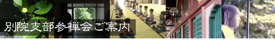 別院支部参禅会名 住 所 武蔵野別院 埼玉県所沢市 和歌山別院 和歌山市 粉河(こかわ)別院 和歌山県紀ノ川市 HP 窪川別院 高知県四万十町 HP 安来別院 島根県安来市 北アルプス別院 長野県安曇野市 南高田支部 長野市 竹風山支部 長野県小布施町 鎌倉洗心坐禅会 鎌倉市 東根参禅会 山形県東根市 気仙沼参禅会 宮城県気仙沼市 コ・ビアン参禅会 千葉県我孫子市