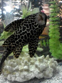 みな熱帯魚らしく美しい模様や鮮やかな色彩のものばかりだが、その中に一匹、その水槽でいちばん大きい「セルフィン・プレコ」という名の12.3センチの魚がいる。