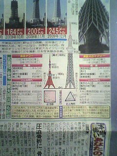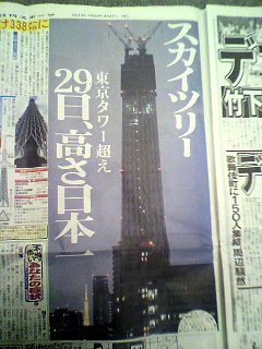 今朝の日刊スポーツの社会面に載っていました。今建設中の東京スカイツリーです。