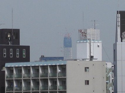 会社の屋上から建設中の東京スカイツリーが見えたので写真2枚を送ります。